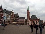 We were told that there was nothing much to do in Frankfurt. Not really true- -we found it a good walking city for the several days we've been here. The central City, along with the bridges, were all but leveled in WWII but have been rebuilt - sometimes replicating what was there before- -making for an interesting juxtaposition of old, pretend old, and angular/modern new. For example, the area around the City Hall also has the main cathedral of the City where several of the early kings and emperors were crowned. Interestingly, the church's property throughout the City seems to have been spared the worst of the bombings. The surrounding properties were reconstructed in the image of the early site with a broad square surrounded by old-style buildings.