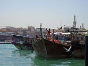 The most authentic feeling experience we had was a "taxi" ride across the city harbor. It was lined with trading ships that reminded us of Chinese junks. These ships still ply their trade all along the coastline of the Indian Ocean and the Gulf. The dockside was alive with activity of people loading and unloading all sorts of goods - including cars, mattresses, boxed refrigerators, and many things that were under tarps.