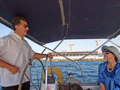 The tour of Dubai City ended with a motor sail on the Gulf. Of course our guide forgot to tell us in advance that we needed our passports in case we were boarded by their coast guard/military police (we had just driven for a half hour through horrendous traffic and were almost at the marina when he brought that up; it just typified the "service" of this local agency which, no contest, is the worst guide company we have ever encountered. And these are the folks selected by our main travel agency in the US!). Being without passports on the Gulf is a jailable offense. Luckily, Carol had them anyway. The sailing trip was fun and the owner-guide was full of stories about his sailing and living around the world. Although he is an extremely experienced sailor, and a wonderful story teller, he may have a few sails missing "upstairs." He actually admitted he got food poisoning in Eritrea by drinking beer cooled with ice. Hello! A five year knows not to eat ice in Eritrea! But we got to sail around the "Palm," one of the first residential islands created in Dubai and still under construction.