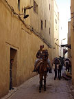 Although the area feels like a maze, there is logic to the system. The quarter is divided into districts. Each district has a public baker (for bread, which clients bring in as raw dough), a public bath, a mosque, a kindergarten (and one other service which we've forgotten but will mention tomorrow). The streets are shared with people walking, donkeys. A mini-caravan of donkeys carrying wool or hides to be talking, carrying goods to and fro, carts, and processed makes for a tight fit on some streets. Each of the houses is said to have indoor plumbing and running water. But they don't have refrigeration. SO shopping is an everyday affair. Fast food is another story. Meat is preserved by drying. Then it is coated in salt, followed by encasement in fat. This is a potentially great thing to eat if you are up to your eyeballs in snow but a bit heavy for a Mediterranean climate. To make it for a meal, one fries it. Hassan said it's possible to make a ten minute main dish by using some of this preserved meat, adding veggies, and giving it a quick cook. Just the thing for unexpected guests.