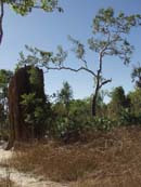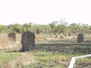 The country, outside of the largest cities, is really quite undeveloped (even though the natives think that there is no "wild" country left). Animals, birds, flowers, plants and insects of all varieties are to be found everywhere. As I mentioned, on Hamilton Island, cockatoos are a pest. In Litchfield, the Black Kite, a bird of prey, is so plentiful and so unafraid of people that picnickers have been known to have food snatched out of their hand by swooping Kites! What is most amazing are the number of termites, and the number of kinds of termites, that are everywhere. The Aussies build houses on stilts out of treated lumber with pie-plates atop the posts to keep these and other creatures out of the house. There are termite mounds everywhere, on trees (which they hollow out), in huge cathedral mounds (the one in the picture is about 20 feet high), and in flood plains. The second picture that looks like a graveyard of tombstones shows the magnetic termites that all build their mounds wide and flat, with a north-south orientation to the mound.
