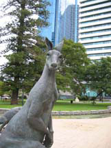 After a talk with the tour guide, we cancelled our trip. The itinerary would have had us fly 2 1/2 hours to a place to look at dolphins, get back in a plane again and fly to a beach that had a lots of shells (that you could not touch) and then fly back 2 1/2 hours. The last part of the flight would likely have been through rough weather (it is getting stormy looking now - an hour after the proposed take-off). We went back to bed, got up and walked around Perth. Carol had been here before and was anxious to see the city. We walked for five or six hours and covered almost all there was to see. The city is pretty hilly - see the stairs and so we walked up and down a lot. I am stiff now and am interested to see what tomorrow will bring. Interestingly, the tour guide that we had yesterday (and the one that set up today) was the poorest we have had. One of the stories she told us (after I said that I thought that I had seen a black swan on our boat-ride yesterday) was that the river was named the Swan after the black swan but that there were no longer black swans to be seen on the river. Today, on our walk we saw five and were all but mobbed by three of them. Either they all have returned from wherever they were just recently or our guide didn't know what she was talking about.