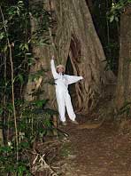 The countryside's animals don't seem to be particularly large or dangerous (no lions) but the reptile life (including crocodiles) has scores of dangerous, mainly poisonous creatures. I am concerned about rattlers and copperheads in West Virginia. These people would see these as tame by comparison. They even have a snake called the "Death Adder" and this is not the deadliest snake! Spiders are also a concern. And so, we did what the locals do and went for a stroll in the rainforest. Actually, the environment is quite exotic. We only saw one orchid plant but there are birds and trees and other plants that are either new to me or that I have only seem domesticated. The so-called bridge tree is a tree that has been surrounded by the "Strangler Fig".