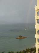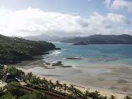 The weather has turned for the worse. High wind and sporadic rain. It made the trip to the island more exciting than it might have been but the big catamaran took it in stride. There are several islands (dozens) in the Whitsunday group. They are sailing destinations. A few have resorts. We are on one of these. The hotel is on the Great Barrier Reef and the views from the 17th floor are magnificent - even with the rain. Just before the rain squall a rainbow appeared and one of the many cockatoos dove off into the sky from the hotel balcony. The birds, beautiful to see and fascinating to watch soar, are noisy - all the time. They also take things from the room if you leave the door open. The cockatoos and Rainbow Lorikeets are fearless and station themselves on the banisters and overhangs all along the hotel.