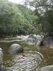 Rained all night and so the rivers and streams were roaring. We went for a trip to Mossman Gorge. Lots of tourists but really not all that different from the rest of the trips to the rain forest. The Gorge was a torrent and impressive as it roared around boulders and rocks. One spot was a swimming hole, again with the tale of people losing their lives in the spot (an American tourist).